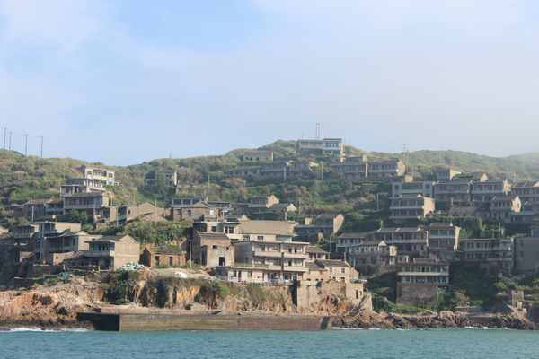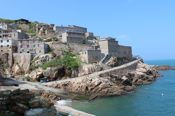 在从东福山岛坐船回庙子湖岛的路途中,可以感受青浜岛的海上布达拉宫的气派。在船上远观,一排排高低错落的石头房子立在青浜岛上,房子的脚下是蔚蓝色的海水,房子的头顶是蔚蓝色的天空,这样的美景如同一幅美丽的风景画。